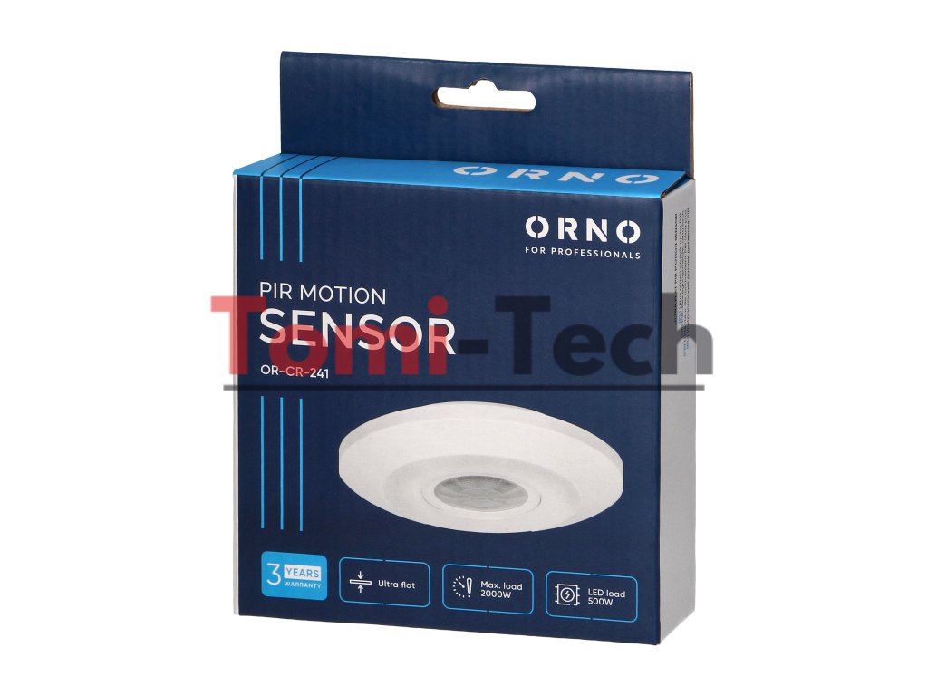 Tento ultra plochý senzor sa používa na automatické ovládanie osvetlenia alebo iných elektrických zariadení. Potenciometre nastavujú čas svietenia a citlivosť intenzity svetla. Senzor pracuje s LED osvetlením.Dodatočné parametre