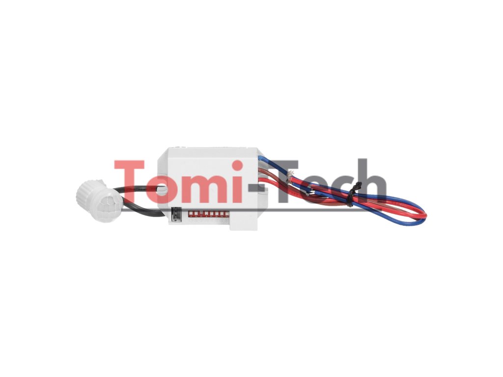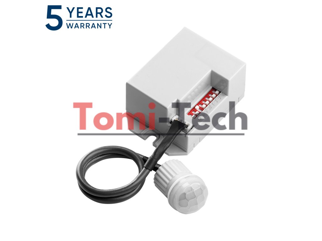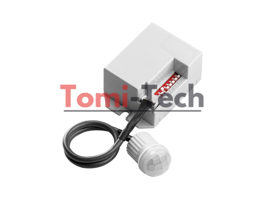 Pohybový senzor s externým senzorom sa používa na automatické ovládanie osvetlenia alebo iných elektrických zariadení. Osvetlenie je aktivované PIR pohybovým senzorom, ktorý pracuje prostredníctvom infračerveného žiarenia. DIP prepínače nastavujú čas svietenia a citlivosť intenzity svetla. Senzor pracuje s LED osvetlením.Dodatočné parametre