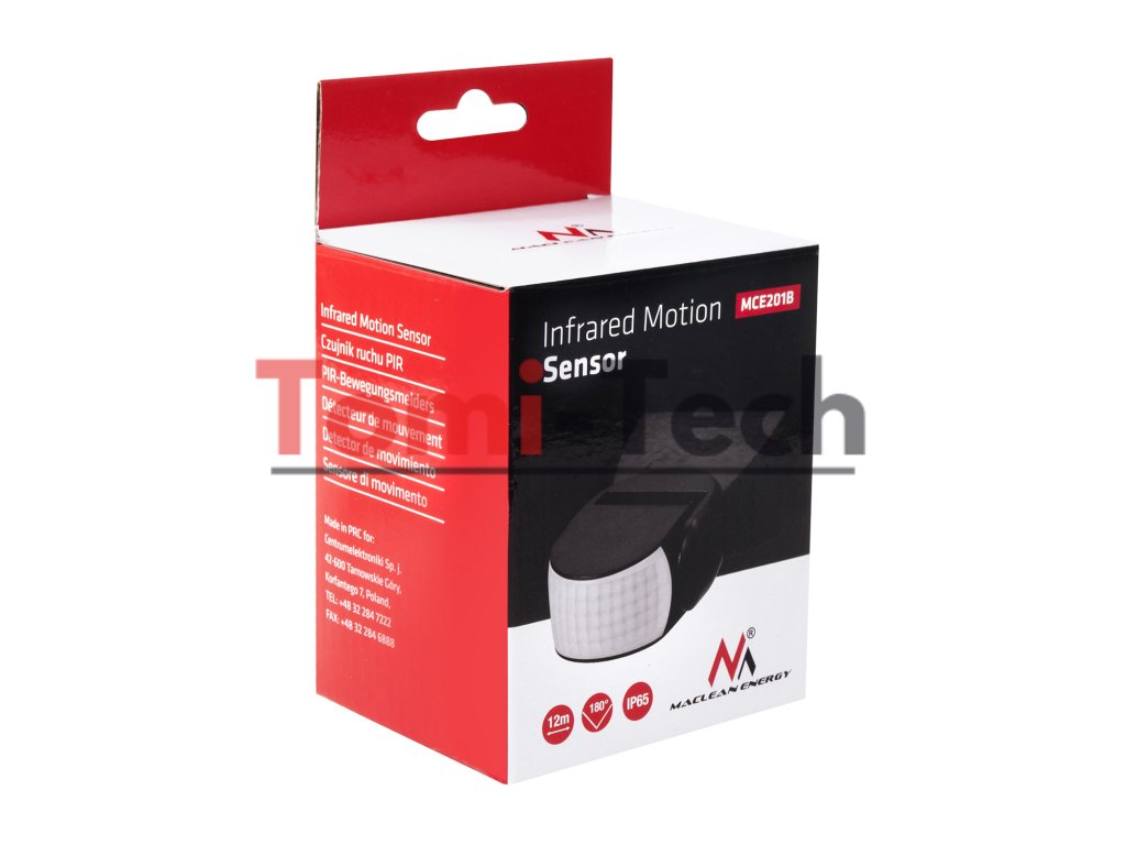 Maclean PIR snímač pohybu, infračervený, IP65, čierny, dosah 12 m, MCE201B
