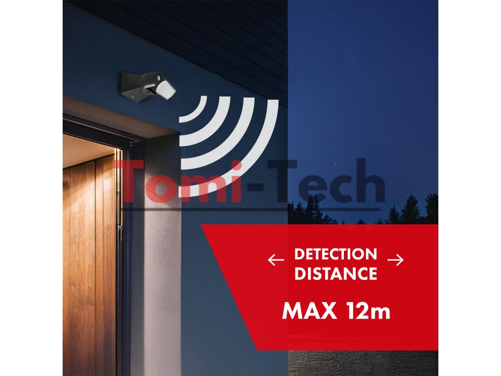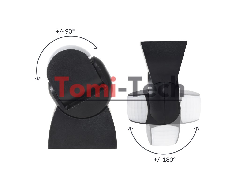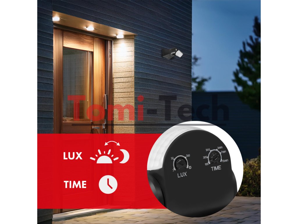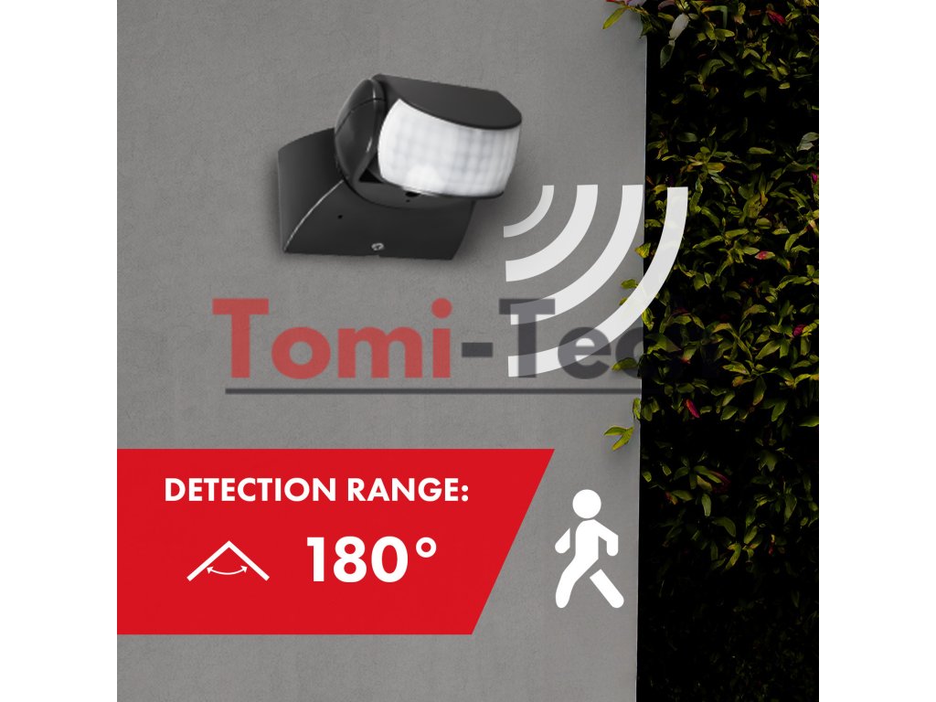 Snímač má uhol detekcie 180° a širokú škálu možností manuálneho nastavenia. Je určený na automatické ovládanie osvetlenia v domácnostiach, záhradách, hoteloch, kanceláriách, na schodiskách, chodbách, v suterénoch, na toaletách atď.