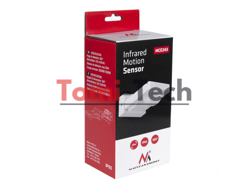 Sada obsahuje- Infračervený snímač pohybu IP65 max 2000 W MCE243 Maclean Energy
