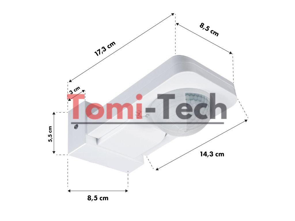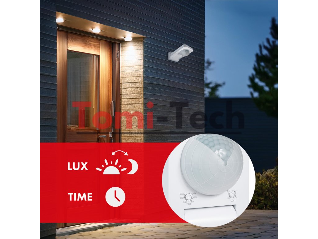 Nová generácia - infračervený snímač má vysokú stabilitu, pekný, moderný a praktický vzhľad, široký rozsah prevádzkových napätí, jednoduchú inštaláciu a široký detekčný dosah. Automaticky detekuje deň a svetlo v noci. Použitá technológia SMT, v súlade s európskymi normami. Je určený na automatické ovládanie osvetlenia v domácnostiach, záhradách, hoteloch, kanceláriách, schodiskách, chodbách, pivniciach, toaletách atď.