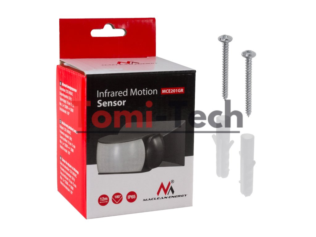 Maclean PIR snímač pohybu, infračervený, IP65, sivý, dosah 12 m, MCE201 GR