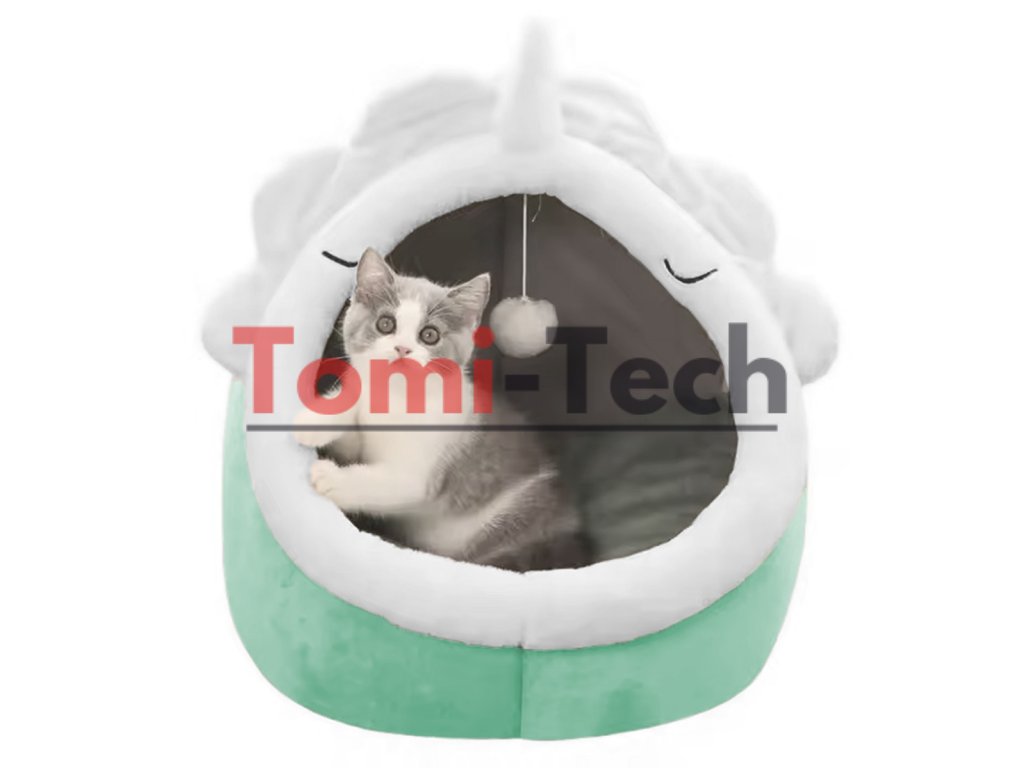 Pohodlný a esteticky príjemný pelech pre vášho domáceho maznáčika. Je veľmi mäkký a vhodný pre domáce zvieratá. Jeho jedinečný dizajn sa vyznačuje uzavretým boxom s mačacími ušami. Hrubé steny a protišmykové látkové dno zaisťujú pohodlie a bezpečnosť vašich domácich miláčikov. Pelech je vyplnený mäkkou, flexibilnou penou. Pohodlná, mäkká spodná vrstva.Vlastnosti produktu: