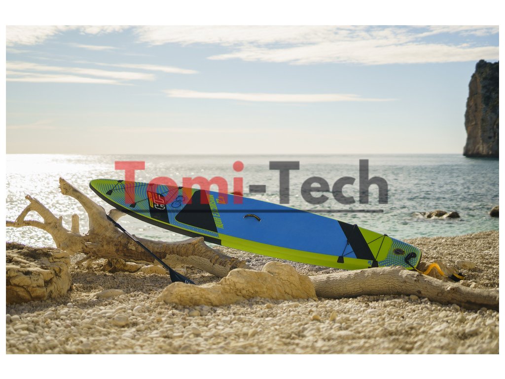 Nafukovací paddleboard. Či už plánujete deň strávený objavovaním oceánu alebo pokojné ráno na pokojnom jazere, nafukovací paddleboard, ktorý je súčasťou súpravy, je presne to, čo potrebujete na začiatok svojho dobrodružstva. Tento paddleboard je klasifikovaný ako univerzálny, čo znamená, že má perfektný tvar pre bezpečnú a multifunkčnú jazdu. Materiál odolný voči živlom a prepichnutiu a elegantný dizajn sú víťaznou kombináciou pre každého, kto sa chce vydať na vodu. Bez ohľadu na to, kam idete, tento paddleboard nemá konkurenciu. Materiál dosky je neuveriteľne pevný, stabilný vo vode a spoľahlivý za každého počasia. Ľahké pádlo, ktoré je súčasťou súpravy, značne uľahčuje komunikáciu. Odnímateľná plutva zvyšuje silu riadenia a rýchlosť, vďaka čomu sa používatelia môžu na vode cítiť ako profesionáli! Odpojením plutvy vzniká kompaktný a elegantný produkt, ktorý zaberá minimálny priestor. Tento paddleboard na státie má veľkú protišmykovú trakčnú podložku, ktorá vám pomôže udržať rovnováhu, a viacero rukovätí na doske, takže dosku môžete vždy uchopiť a ťahať za akýchkoľvek podmienok.