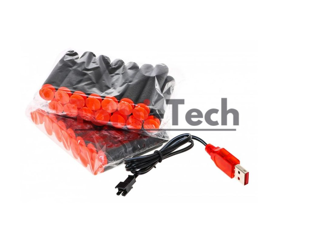 Obsah balenia:Pištoľ,28 nábojov s prísavkami,3,7V batéria,USB nabíjací kábel