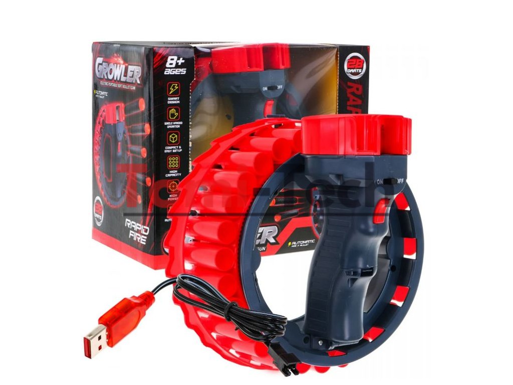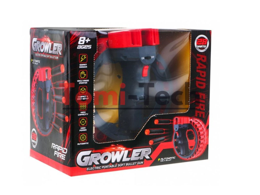 Detská automatická pištoľ poskytne deťom veľa zábavy. Pištoľ Glowler je ľahko ovládateľná jednou rukou. Dosah strely je do 10 metrov. Pištoľ strieľa jednotlivé náboje samostatne alebo automaticky zo zásobníka, ktorý pojme 28 nábojov. Pištoľové náboje sú vyrobené z mäkkej EVA peny a sú zakončené prísavkami, ktoré veľmi dobre priľnú k povrchu.Pištoľ je napájaná 3,7 V batériou, ktorá je súčasťou balenia.Hračka je vhodná pre deti od 8 rokov.