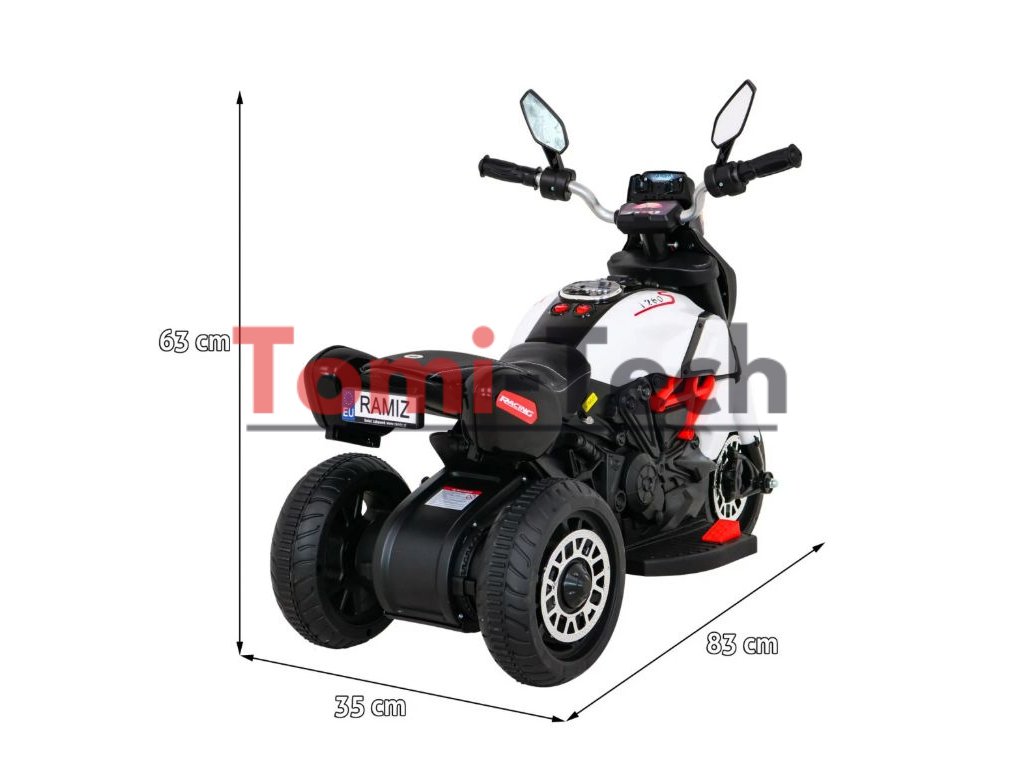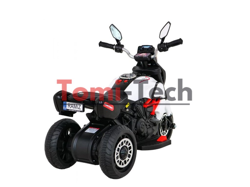 Detská elektrická motorka Fast Tourist je vhodná pre najmenšie deti od 1 do 3 rokov. Medzi jej vybavenie patria predné svetlá, kolesá s gumovým lemom a hudobný panel so vstupmi SD, AUX aj USB. Má funkciu automatickej brzdy, ktorá sa aktivuje ihneď po spustení nohy z pedála plynu.