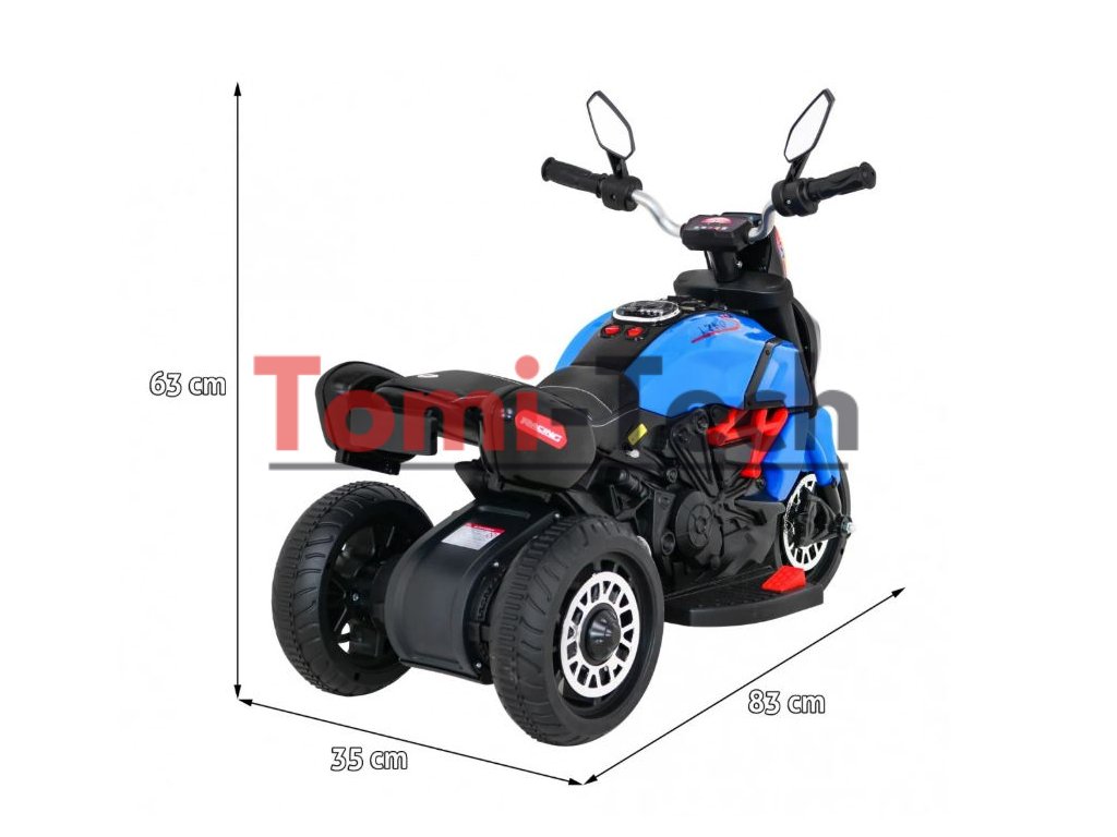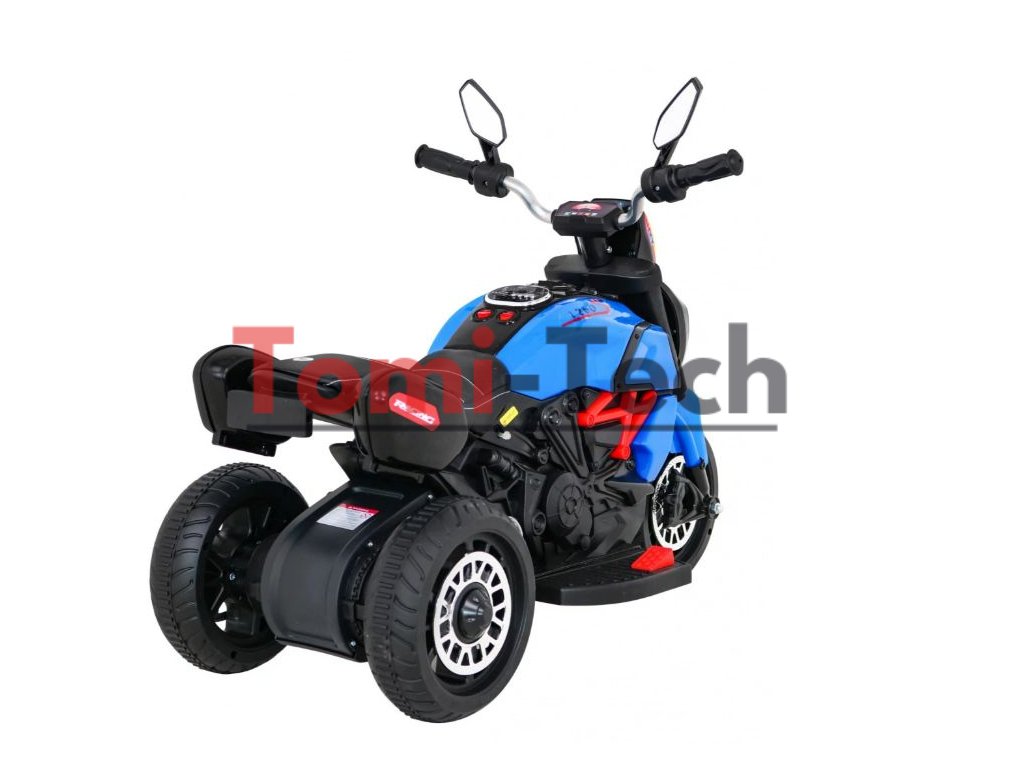 Detská elektrická motorka Fast Tourist je vhodná pre najmenšie deti od 1 do 3 rokov. Medzi jej vybavenie patria predné svetlá, kolesá s gumovým lemom a hudobný panel so vstupmi SD, AUX aj USB. Má funkciu automatickej brzdy, ktorá sa aktivuje ihneď po spustení nohy z pedála plynu.