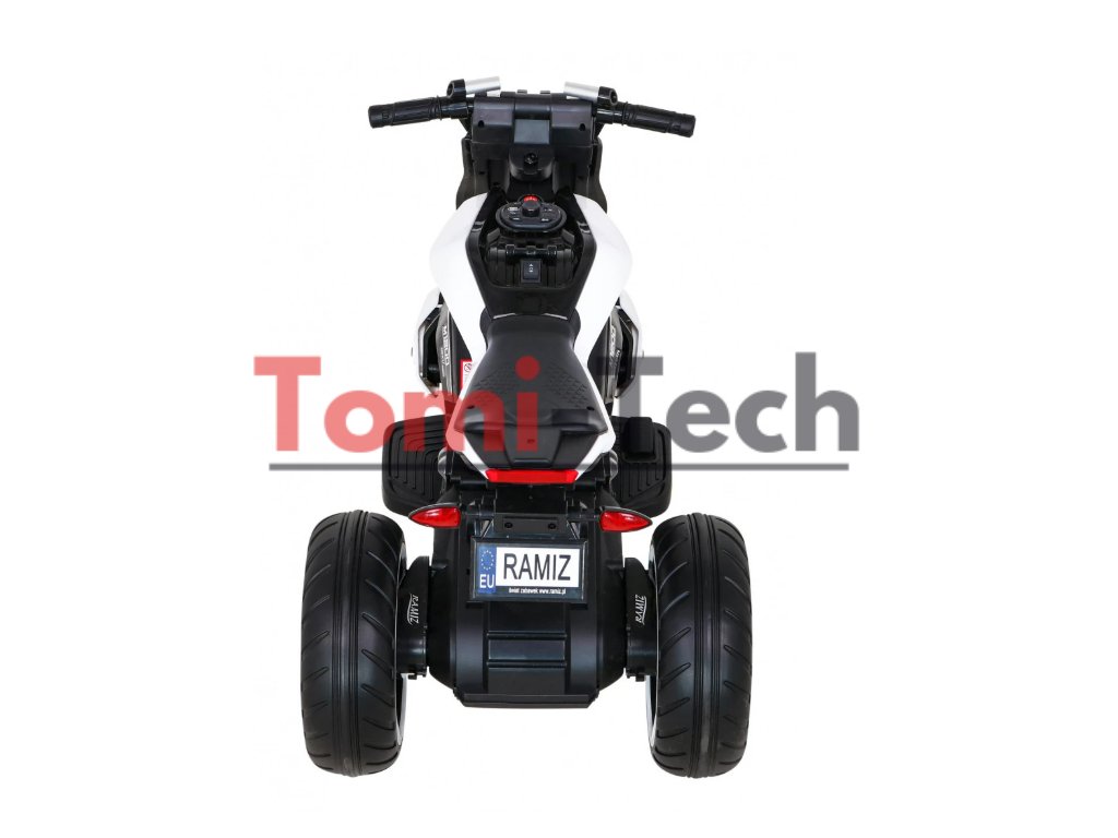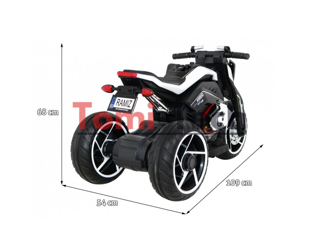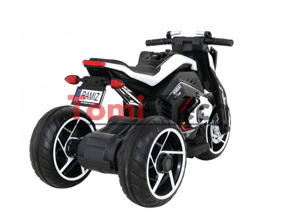Detská elektrická motorka Future prichádza s dvoma elektrickými motormi 25W a Eva penovými kolesami, ktoré sú tiché a prispôsobia sa rôznym typom terénu. O príjemnú jazdu sa postará pohodlne tvarované sedadlo a zvukové efekty, ktoré je možné pustiť pomocou MP3, SD či USB.