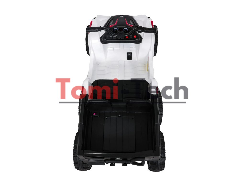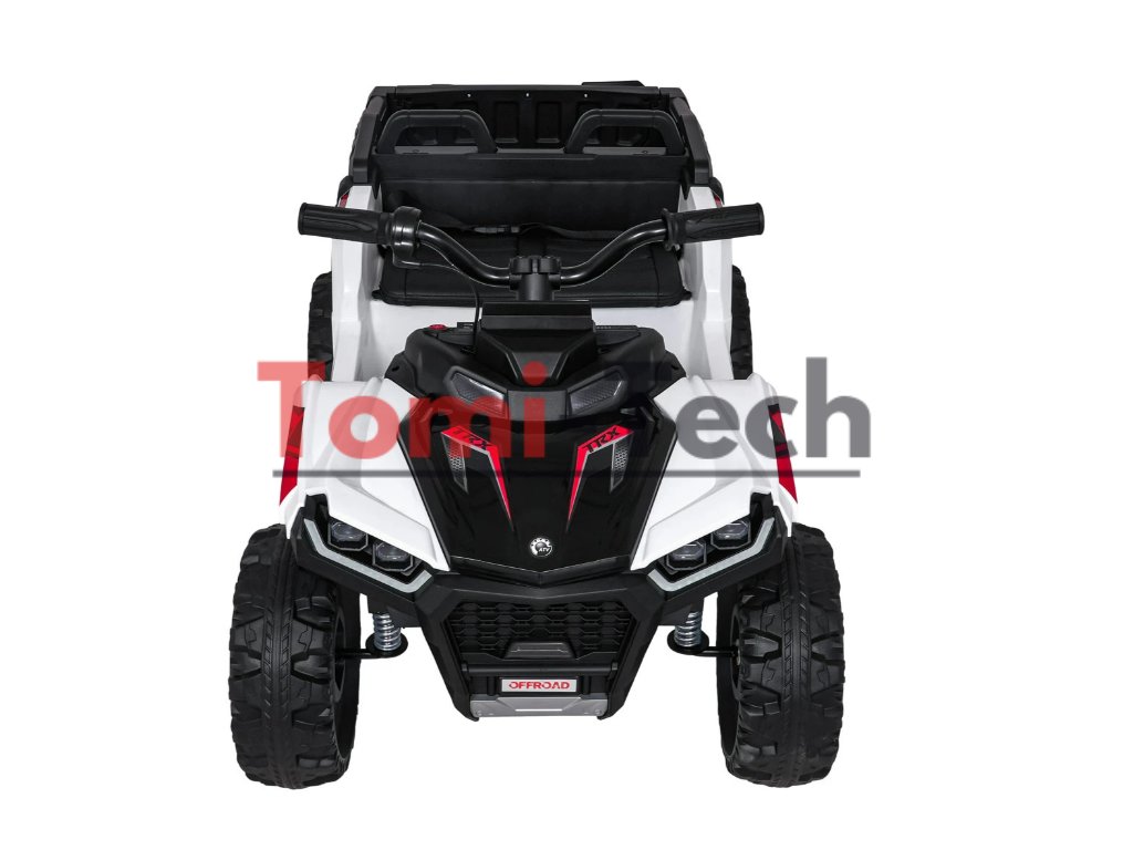 Detská štvorkolka Quad Sport TX ATV je ideálnou voľbou pre malých dobrodruhov, ktorí chcú zažiť vzrušujúcu a bezpečnú jazdu. Vďaka štyrom výkonným motorom s výkonom 35 W a dvoma batériami 12V 7Ah si deti užijú dlhé hodiny zábavy. Ovládanie na diaľku pomocou 2,4 GHz ovládača umožňuje rodičom plnú kontrolu nad vozidlom a bezpečnostné tlačidlo STOP.Štvorkolka je vybavená tichými penovými EVA kolesami o rozmere 26 x 11 cm a odpružením vpredu aj vzadu, čo zaisťuje pohodlnú a stabilnú jazdu aj na nerovnom teréne.Súčasťou výbavy sú aj predné LED svetlá, otvárateľné dvere a priestranný kufor s rozmermi 42 x 28 x 10 cm. Hudobný panel ponúka MP3 prehrávač, Bluetooth, USB vstup a tlačidlá s melódiami a klaksónom priamo na volante.