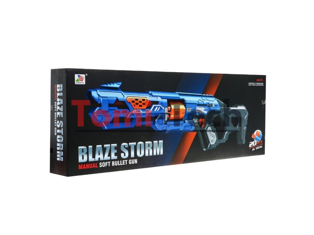 Detská pištoľ Blaze Storm je určená pre deti od 8 rokov. Poskytne veľa zábavy každému malému vojenskému fanúšikovi. Výhodou tejto pištole je rýchlosť streľby, spoľahlivosť a funkčnosť. Hračka dieťa naučí sústrediť sa na cieľ, trénuje koordináciu oka a ruky, tiež zaistí skvelú zábavu. Pištoľ Blaze Storm nevyžaduje batérie, stačí nabiť náboje, natiahnuť pružinu a stlačiť spúšť. Tieto výstrely sú mäkké a bezpečné.