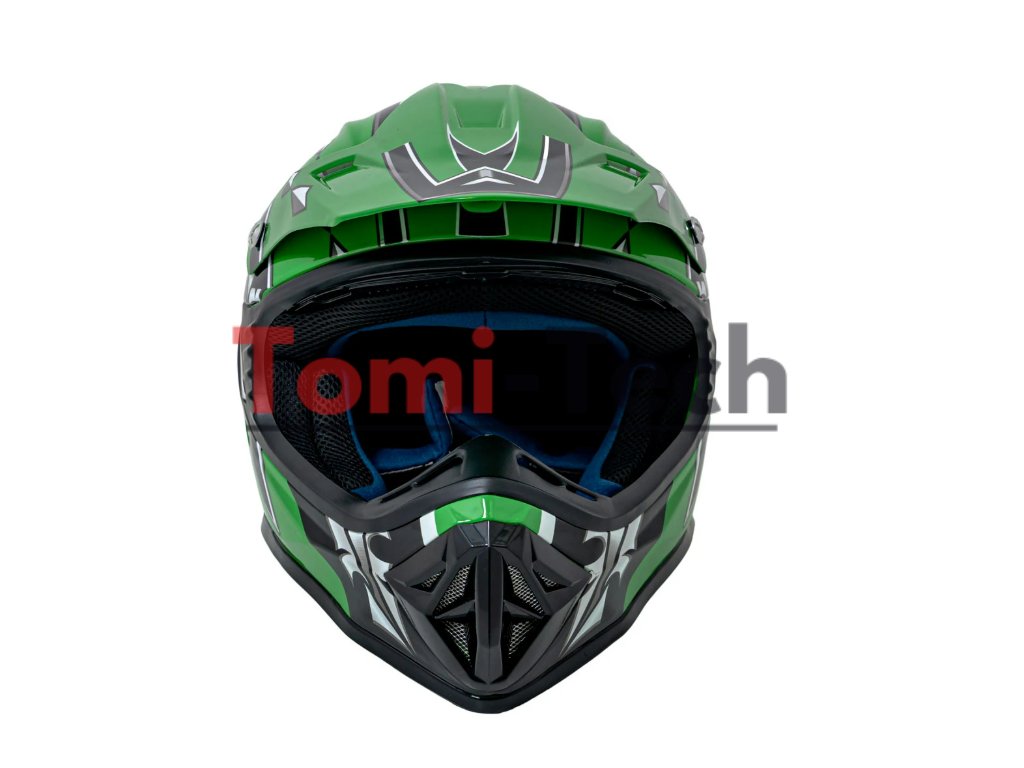 Detská prilba na motorku S – zelená- škrupina prilby vyrobená z materiálu ABS- inovatívne vetracie otvory- nastaviteľný priezor- mikrometrická spona-