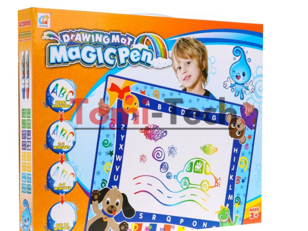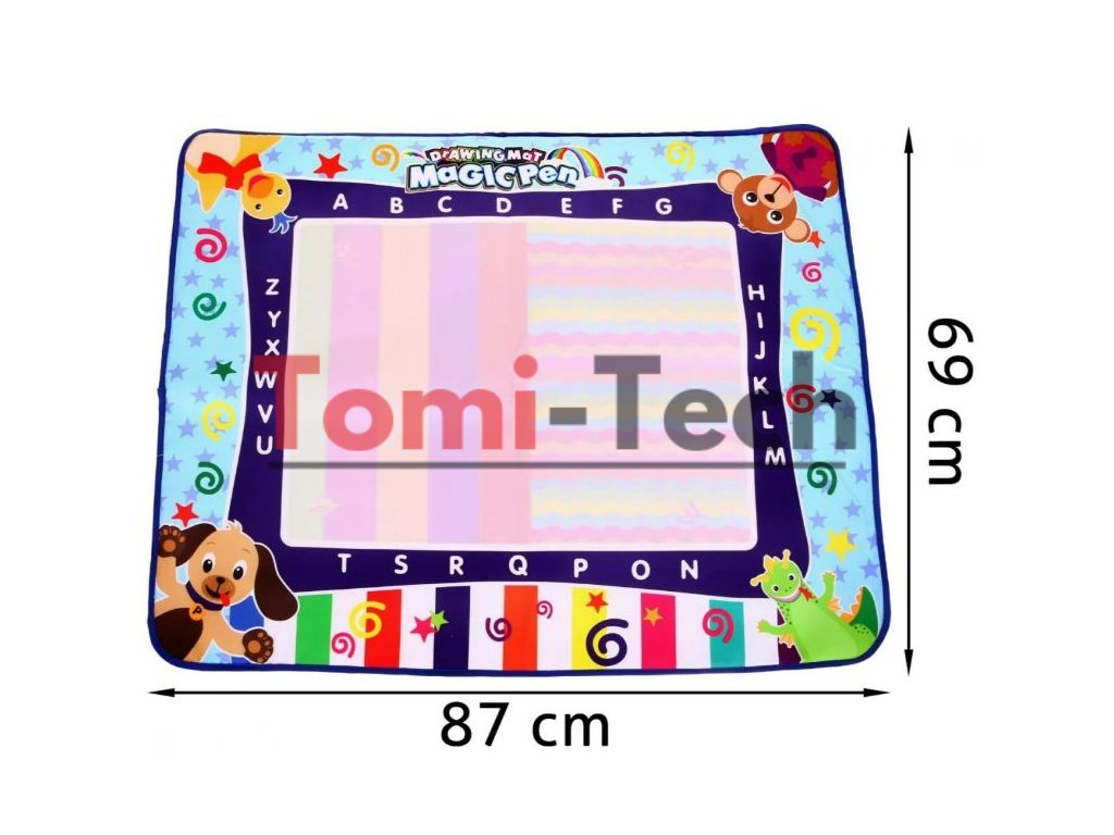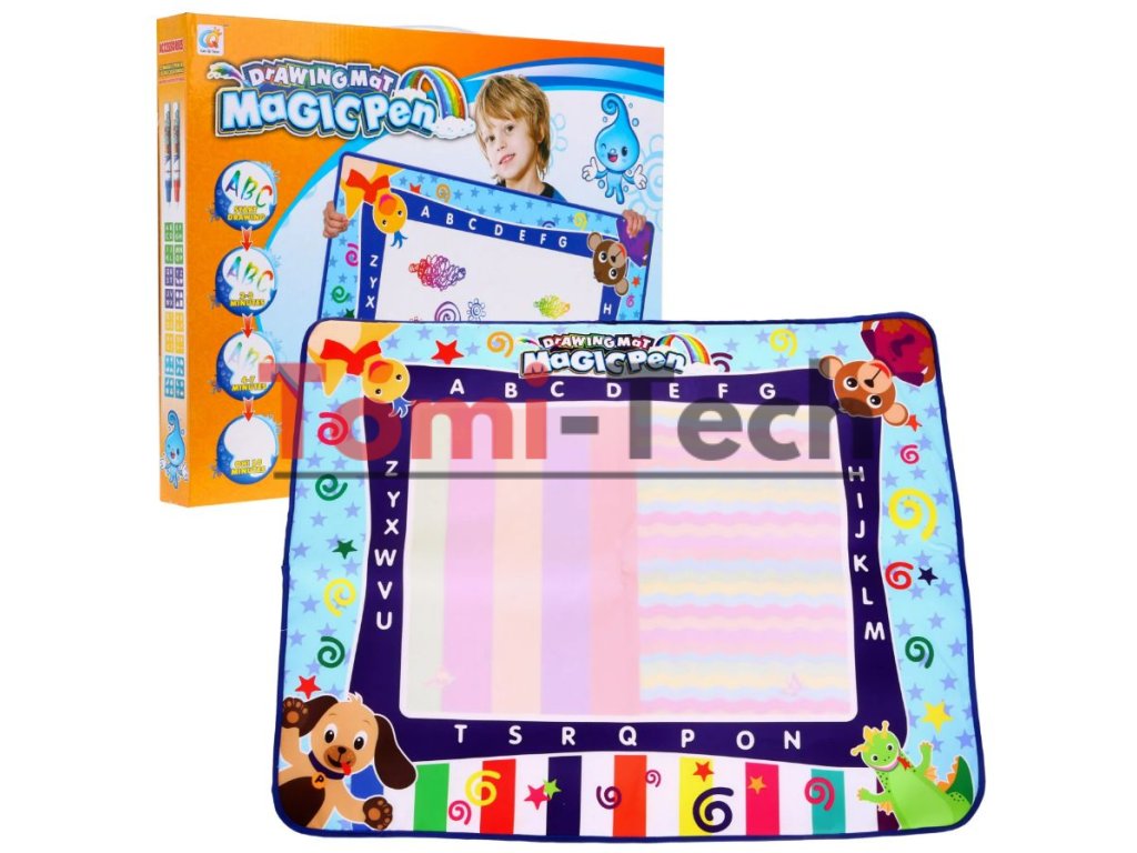 Kresliaca vodná podložka je určená pre najmenšie deti. Podložka je vyrobená z príjemného materiálu na dotyk, ktorý možno ľahko zložiť. Hračka u detí rozvíja kreativitu a učia sa rozpoznávať tvary a farby.Rozdiel medzi papierom a vodnou podložkou je ten, že podložku sa dá znova použiť. Na podložku nakreslite obrázok fixkou, ktorý je súčasťou balenia, po 10 minútach obrázok zmizne a dieťa môže podložku znova použiť. V balení sú šablóny s písmenami, číslami, tvary a obrázky, ktoré dieťa môže na podložku obkresliť.Hračka je určená pre deti od 3 rokov.