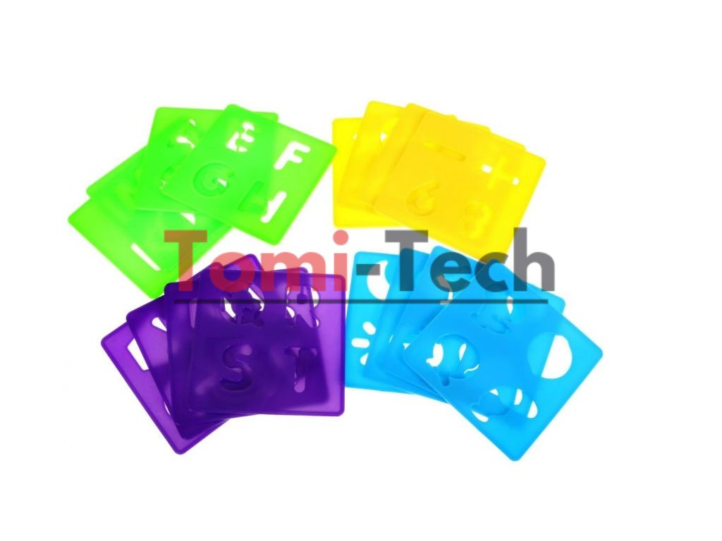 Obsah balenia:Veľká kresliaca podložka s vodou,2 fixky,16 plastových šablón - písmená, číslice, obrázky a tvary