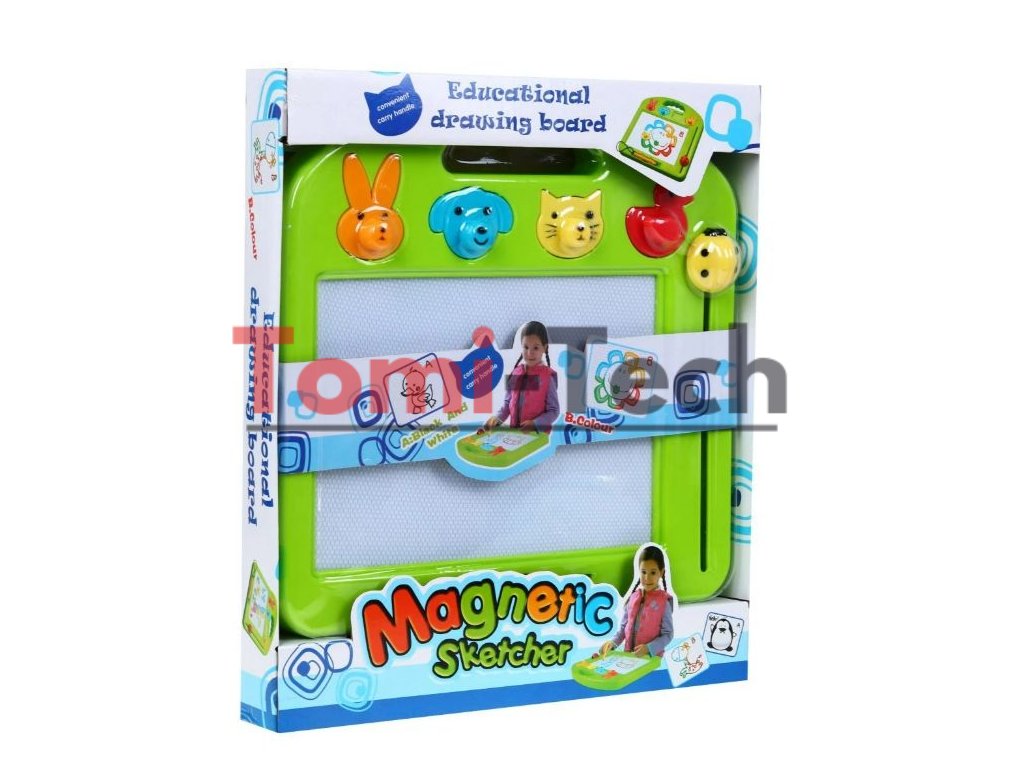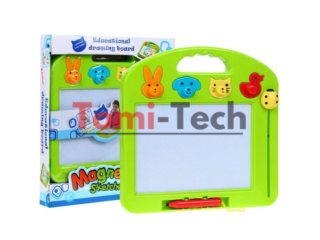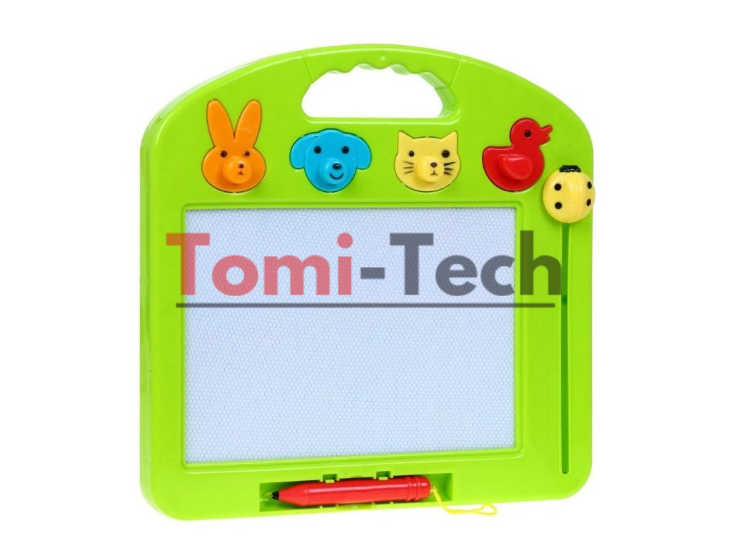 Magnetická tabuľa, ktorá poteší všetky malé maliara. Kreslením deti rozvíja motoriku rúk, svoju predstavivosť a kreativitu. Nad kresliacom poľom sú 4 veľké pečiatky s zvieratami (králik, pes, mačička, kačica). Na pravej strane je umiestnená jazdiaca lienka, s ktorou môžete výkres zmazať a začať znova. Výkresová skrinka obsahuje 4 farby (červená, modrá, zelená a žltá). Hračka je vyrobená z veľmi kvalitného plastu vo veselých živých farbách. Kreslenie s touto tabuľkou je bezpečné a hlavne čisté. Nehrozí počmárané steny alebo vyliata farba na podlahe. Vhodná veková kategória od 3 rokov. Hračka má európsky certifikát bezpečnosti CE.