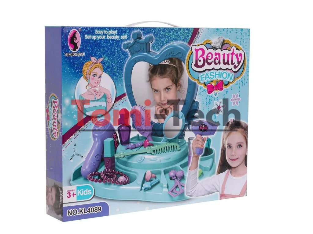 Prežite s deťmi hodiny čarovnej hry s touto nádhernou toaletkou Beauty Fashion. Toaletka je vyrobená z najlepšieho plastu, čo zaručuje nielen dlhú životnosť, ale aj bezpečnosť pre deti.Vďaka bohatej sade doplnkov v jasných farbách, ktoré napodobňujú skutočné potreby pre styling vlasov a kozmetiku, si deti môžu hrať na malé kaderníčky alebo vizážistky.Špeciálne navrhnuté pre rozvíjanie kreatívneho myslenia a sociálnych schopností.Mnoho doplnkov pre dlhodobé hranie.Určené pre deti od 3 rokov a viac.