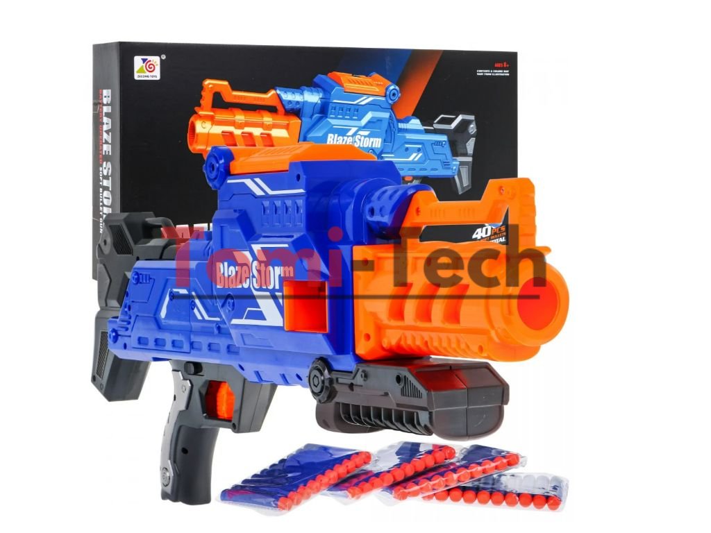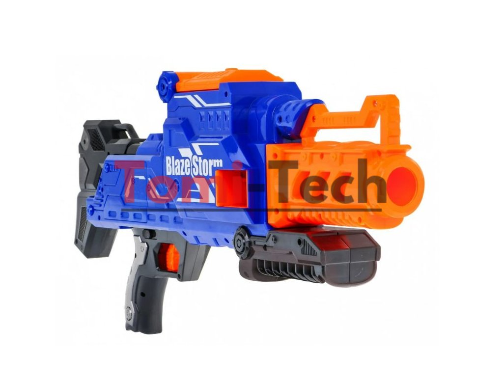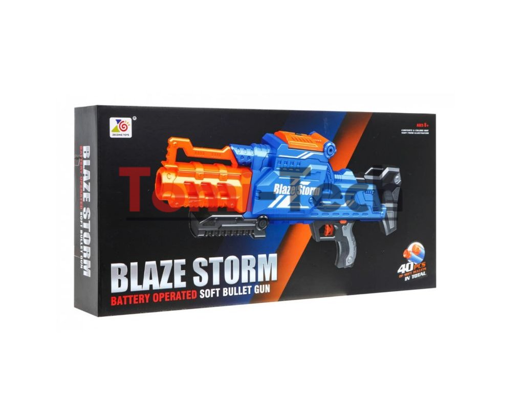 Pištoľ Blaze Storm je skvelá zábava pre všetkých, ktorí majú radi vojenské hračky. Pištoľ sa ľahko používa a má dlhý a presný dosah strely. Hračka vás naučí sústrediť sa na cieľ, trénuje koordináciu oko-ruka a zaistí skvelú zábavu. Hračka je vhodná pre deti od 8 rokov.Pištoľ je napájaná ôsmimi 1,5 V AA batériami, ktoré nie sú súčasťou balenia.