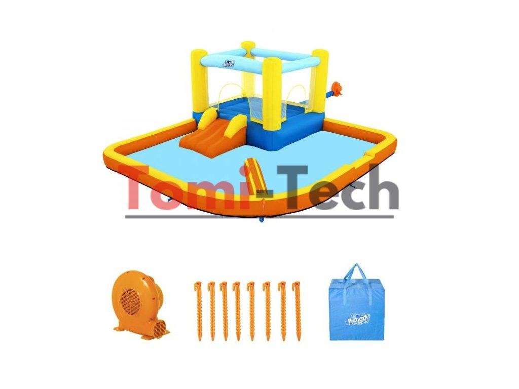 Obsah balenia: 1x šmykľavka s bazénom,1x zabudovaná trampolína, 1x sada opravných záplat pre veľké zaťaženie, 1x úložná taška,1x dúchadlo na nafúknutie celej súpravy,8x kolíky na upevnenie parku.