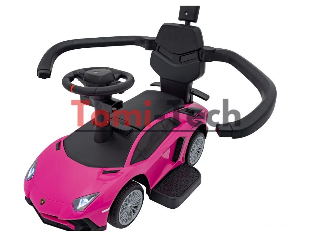 Detské odrážadlo Lamborghini Aventador SV sa vyznačuje vysoko kvalitným materiálom, má tiež veľké gumové kolesá a stabilnú konštrukciu. Maximálne zaťaženie je 30 kg . Odrážadlo je vybavené prednými LED svetlami a tlačidlami s melódiami na volante.