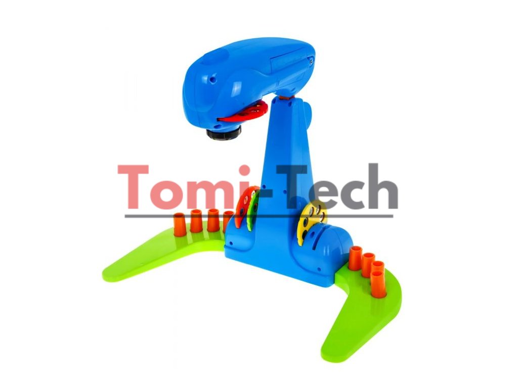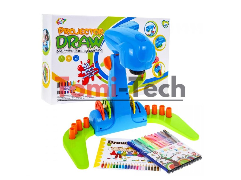Projektor na maľovanie pre deti zaujme všetky deti, ktoré rady maľujú. V balení sa nachádza projektor, ktorý premietne 8 obrázku na 4 diskoch. Dieťa si teda môže vybrať z 32 obrázkov, ktorý bude maľovať, tým hračka dieťa zabaví na dlhé hodiny. Na diskoch sa nachádzajú obrázky vozidiel, ovocia, zvieratiek v zoo a morských živočíchov.Projektor je výškovo nastaviteľný hore a dole. Hračka sa veľmi ľahko používa pod projektor sa položí papier, potom stačí len zapnúť projektor v hornej časti a vložiť disk s obrázkami. Na papier sa premietne vybraný obrázok a dieťa potom môže začať kresliť. V balení sa nachádza 12 farebných fixiek a zošit. Hračka rozvíja predstavivosť, manuálne a umelecké zručnosti. Hračka je vhodná pre deti od 3 rokov.Projektor je napájaný tromi 1,5 V AA batériami, ktoré sú súčasťou balenia.