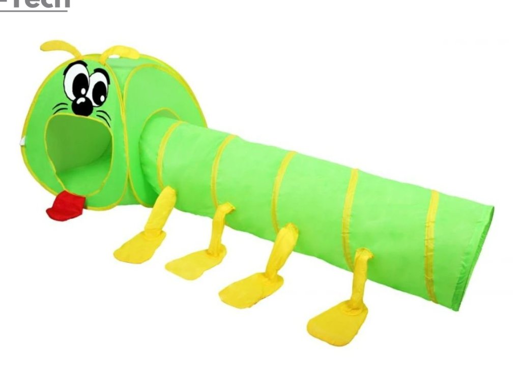 Detský tunel sa skladá z domu a tunela, a môžete ho použiť na hranie v interiéri – v detskej alebo v obývacej izbe, ale využijete ho aj počas teplých, letných dní vonku, v záhrade alebo na terase. Stan je vyrobený z ľahkého materiálu a je zostavený zo samonosnej konštrukcie, vďaka ktorej sa dá veľmi ľahko zložiť aj rozložiť. Predný domček napodobňuje tvár stonožky, ktorá je krásne dotvorená vyplazeným jazykom a veľkými očami. Na tunely sú umiestnené aj zábavné nohy stonožky.