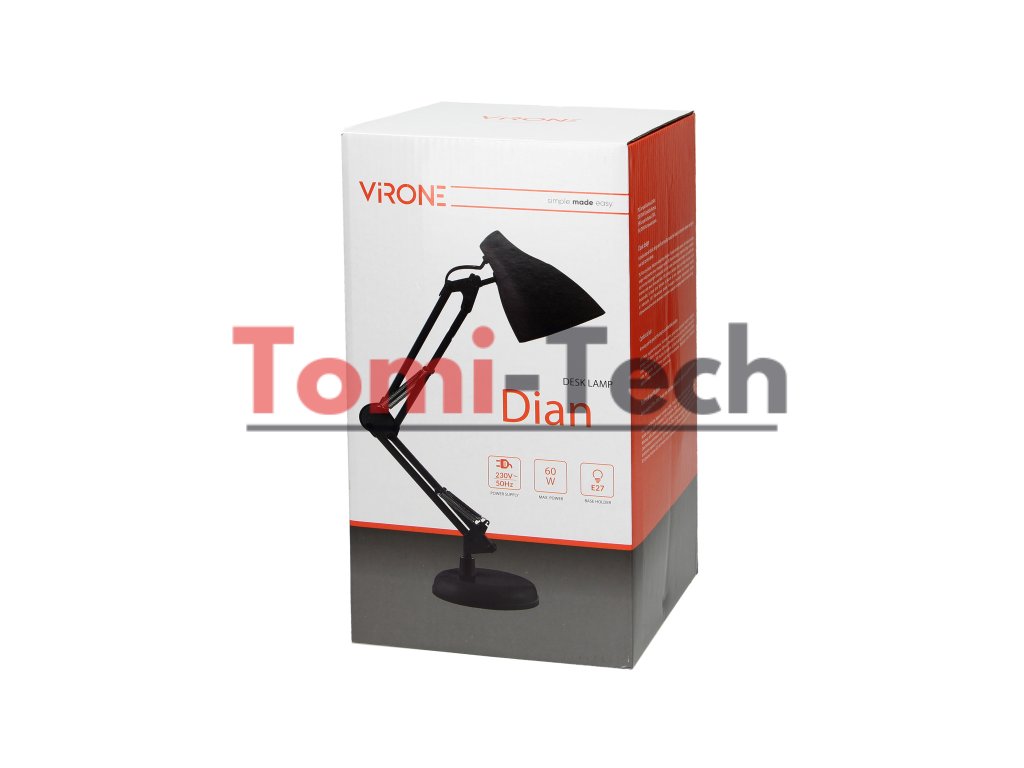 Stolová lampa DIAN kombinuje klasický dizajn s funkčnosťou. Rám lampy je vyrobený z kovu a je k dispozícii v čiernej, bielej alebo červenej farbe. Svetelný zdroj s výkonom 60 W poskytuje vynikajúce osvetlenie pracovného priestoru a pohyblivé rameno vám umožňuje nastaviť svetlo podľa vašich potrieb.Dodatočné parametre