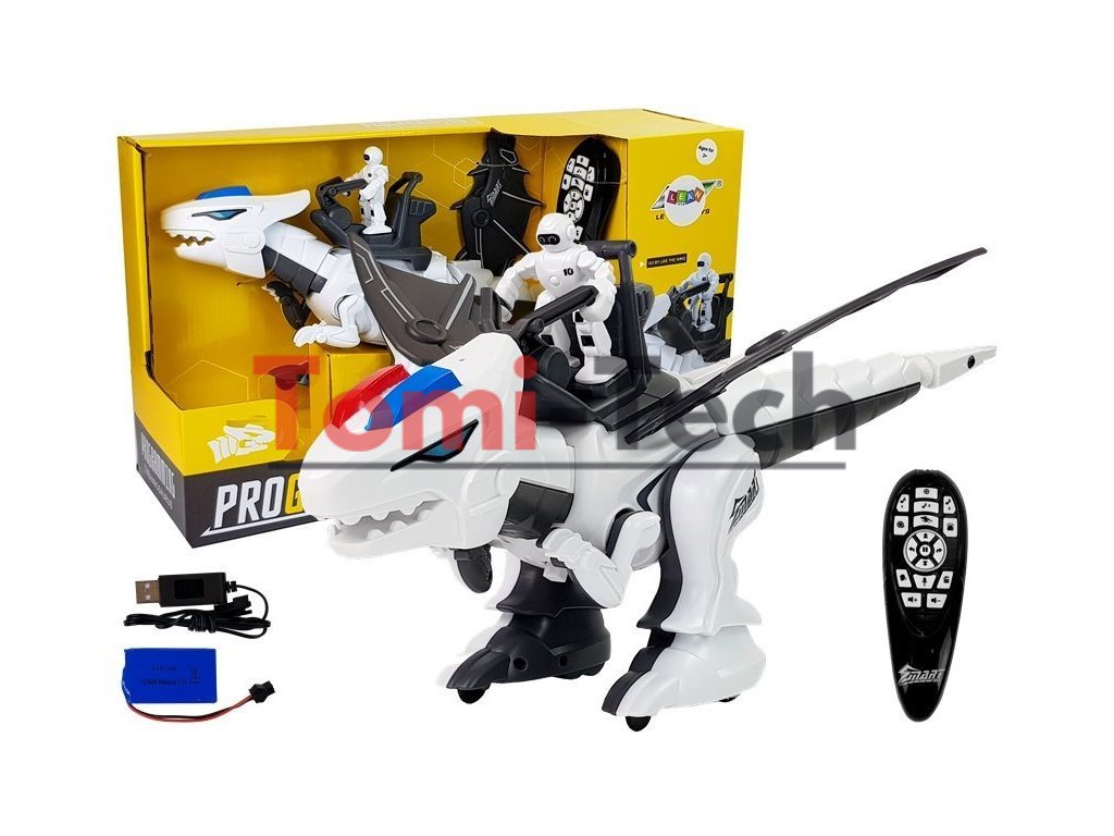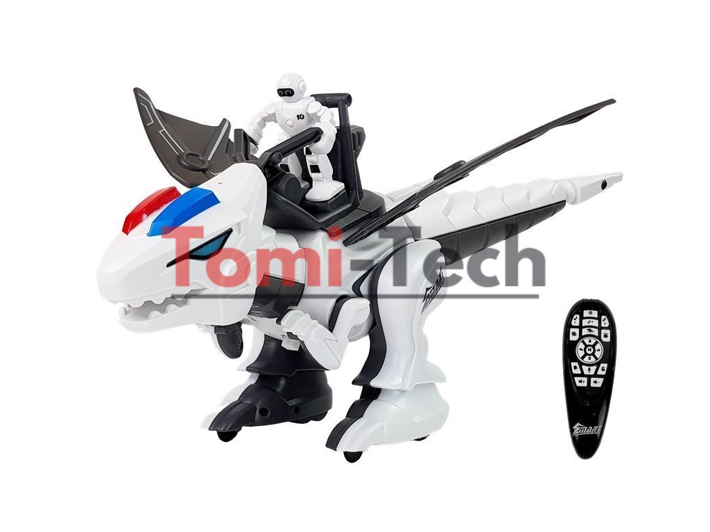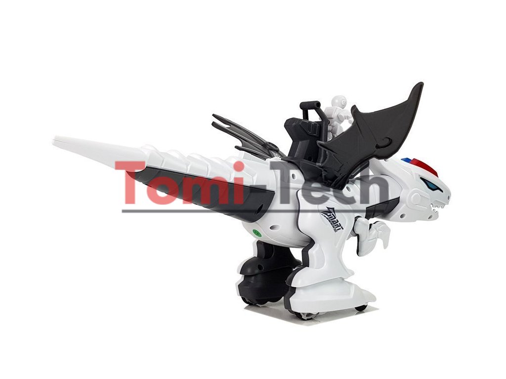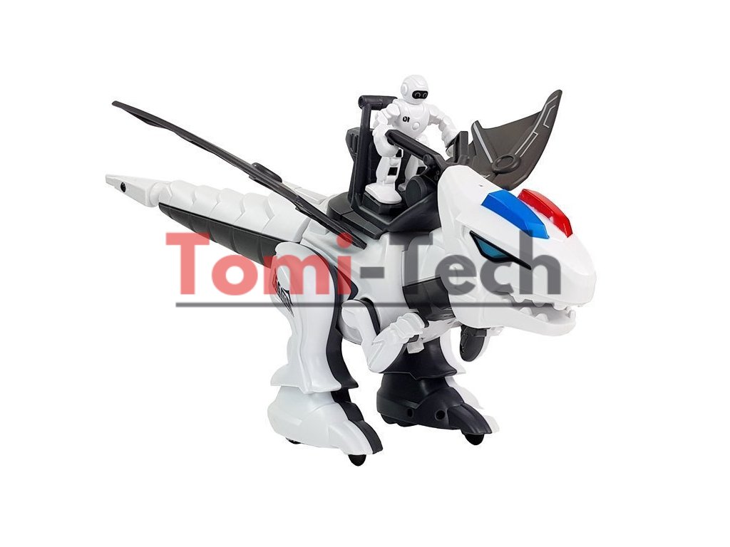 Dinasura vyzerá pôsobivo a dynamicky. Má ústa vybavené silnými čeľusťami, mohutné dolné končatiny a dlhý, bičovitý chvost. Na chrbte má postavu človeka, ktorý ovláda dinosaura. Mechanické zvieratko má aj robotické prvky – svietia mu oči. V pozadí je počuť hudbu, najlepšia výhoda dinosaura je programovanie. Dinosaurus sa ovláda pomocou diaľkového ovládača, ktorý pohodlne padne do ruky. Môžete mu dávať príkazy, má funkciu nahrávania. Dinosaurus bude reagovať na funkcie ako pohyb alebo tanec. Sada obsahuje návod na použitie.