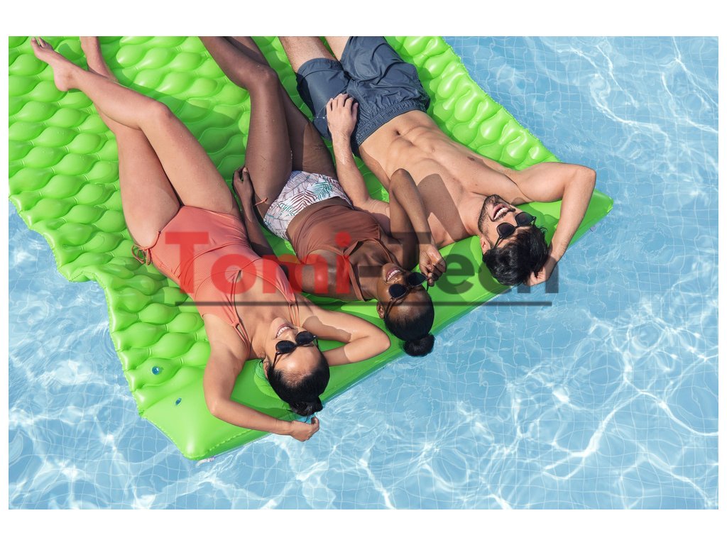 Doprajte sebe a svojim blízkym nezabudnuteľné chvíle relaxácie na vode s veľkým nafukovacím matracom Bestway pre tri osoby. Tento priestranný matrac bol navrhnutý s ohľadom na pohodlie a bezpečnosť, aby ste si ho mohli vychutnať Letné radosti spolu. Vyrobené z vysoko kvalitného PVC, odolného voči poškodeniu a UV žiareniu. Viackomorová konštrukcia zaisťuje stabilitu na vode.