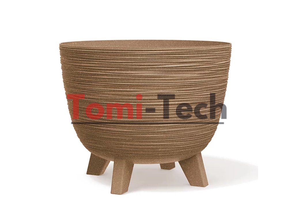 Kvetináč Furu ECO Wood má klasický tvar so zaobleným dnom podopretým nožičkami. Je vyrobený z materiálu obsahujúceho až 33 % dreva, vďaka čomu je šetrnejší k životnému prostrediu. Jeho vlnitý povrch a tlmené farby ho robia perfektne vhodným do mnohých moderných aranžmánov a prináša dizajnový akcent do interiérov, terás alebo záhrad.
