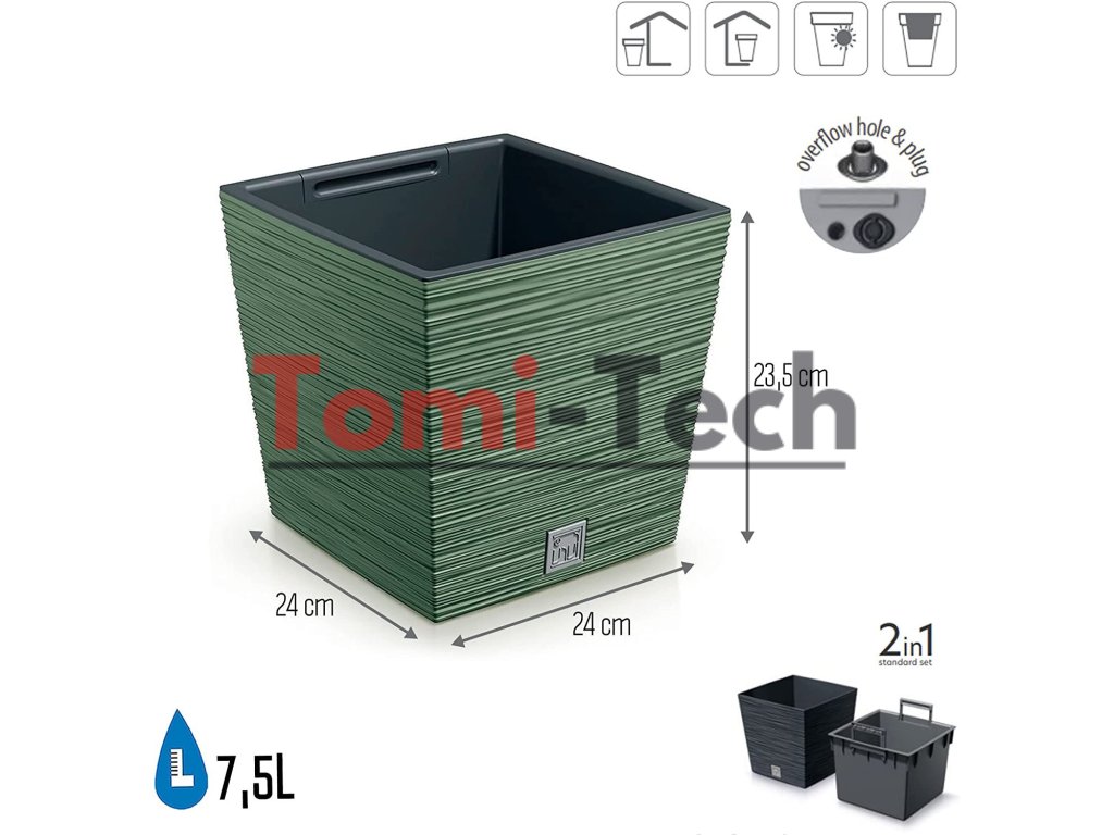 Ten sada obsahuje- Kvetináč Prosperplast Furu Square Low DFS240-5615C s vložkou - zemitozelená