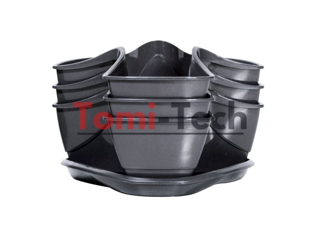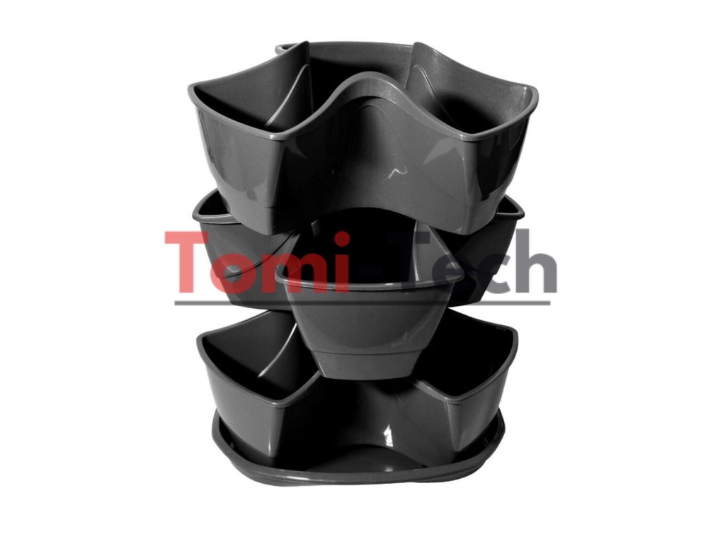 Púta pozornosť svojím originálnym tvarom a dômyselným dizajnom. Jednoduchá montáž. Vďaka špeciálnym priehlbinám v spodnej časti, kde sa zhromažďuje prebytočná voda, sa dá oddeliť a použiť ako 3 samostatné kvetináče.