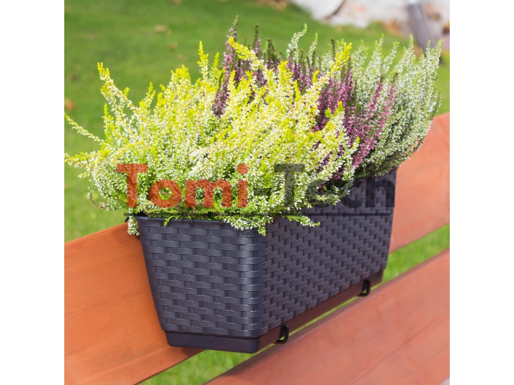 Sada obsahuje- Antracitový ratanový kvetináč s háčikmi Ratolla DRL500PW