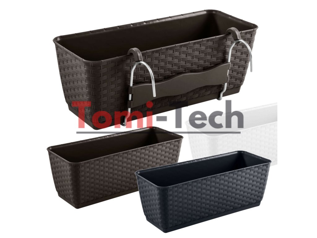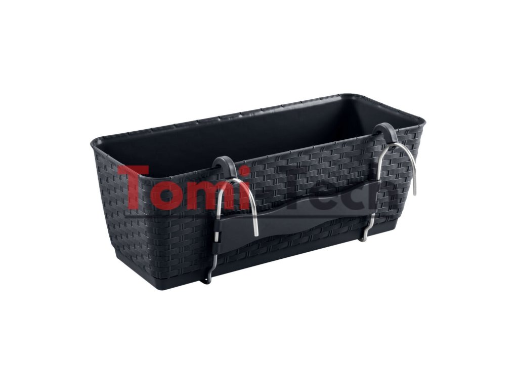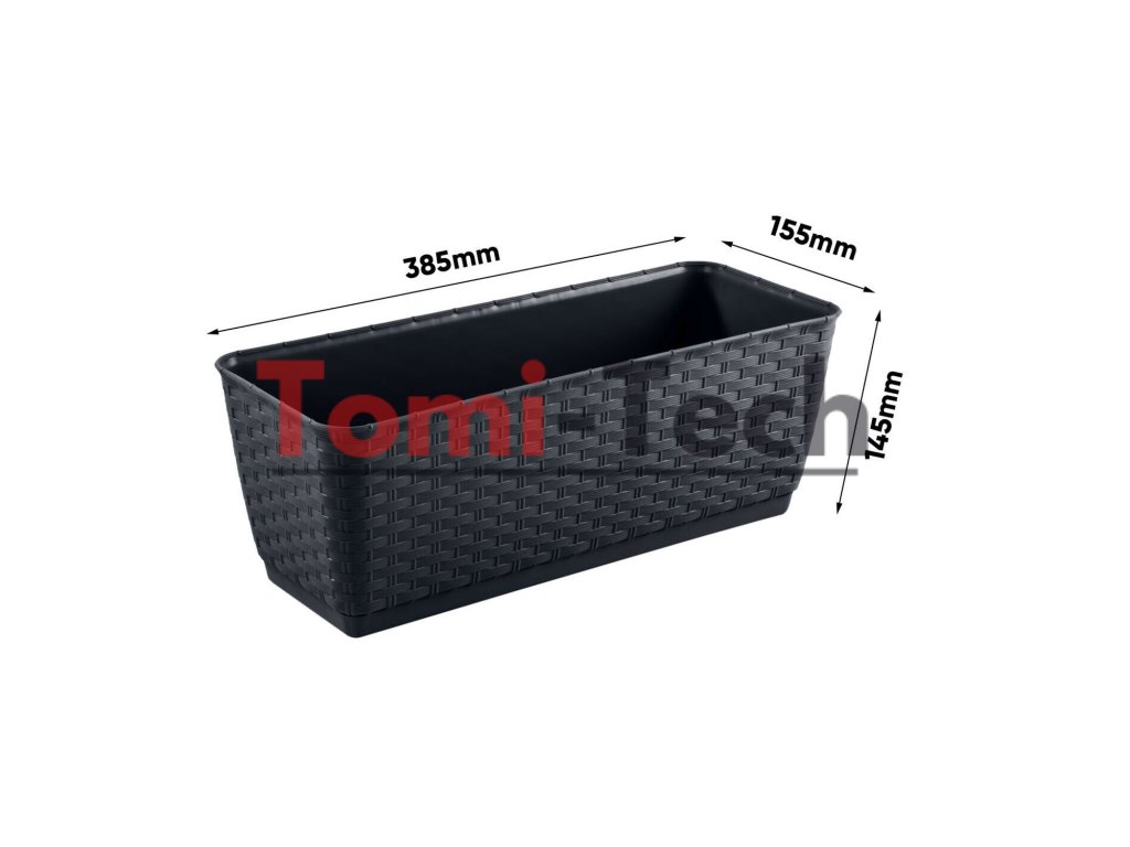 Obdĺžnikový kvetináč s textúrou imitujúcou ratanový výplet. Táto verzia je dodávaná s praktickou rozperou pre správne zalievanie rastlín. Predlžuje dobu, počas ktorej pôda zostane vlhká. Umožňuje vám šetriť vodu vďaka zníženému odparovaniu.