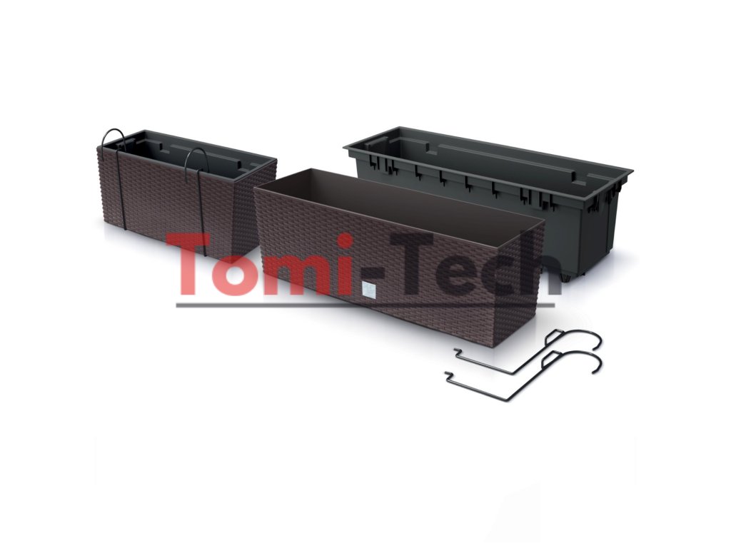 Sada obsahuje - Krabica Rato Case W DRC400W-440U s háčikmi a vložkou - hnedá farba. Vlastnosti - Funkčná a estetická krabica vyrobená z plastu. - Pútavý povrch imitujúci prírodný ratanový výplet. - Vybavená háčikmi na zavesenie na zábradlie. - Krabica bude výrazným doplnkom pri zariaďovaní balkónového priestoru. - Vybavená odnímateľnou vložkou. - Vysoko kvalitné spracovanie. - Odolná voči UV žiareniu. - Produkt renomovanej poľskej spoločnosti Prosperplast. - Dĺžka: 395 mm. - Šírka: 185 mm. - Výška: 195 mm. - Farba: umbrová.