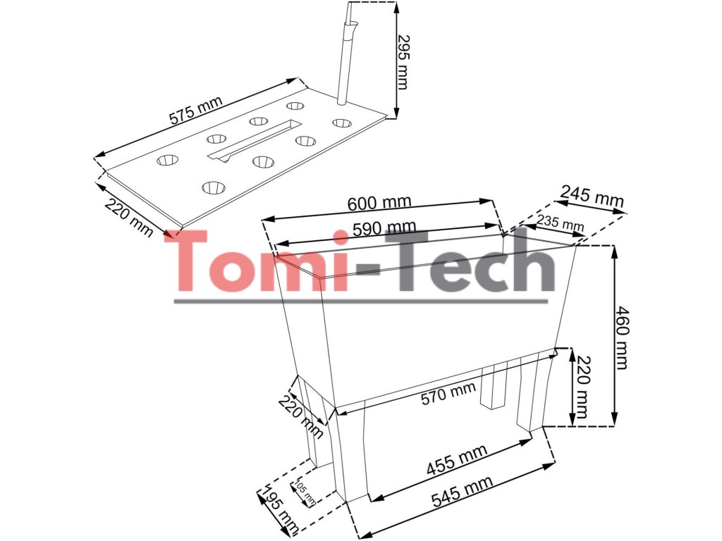 - Rozmery: 600 x 250 x 460 mm (dĺžka/šírka/výška)