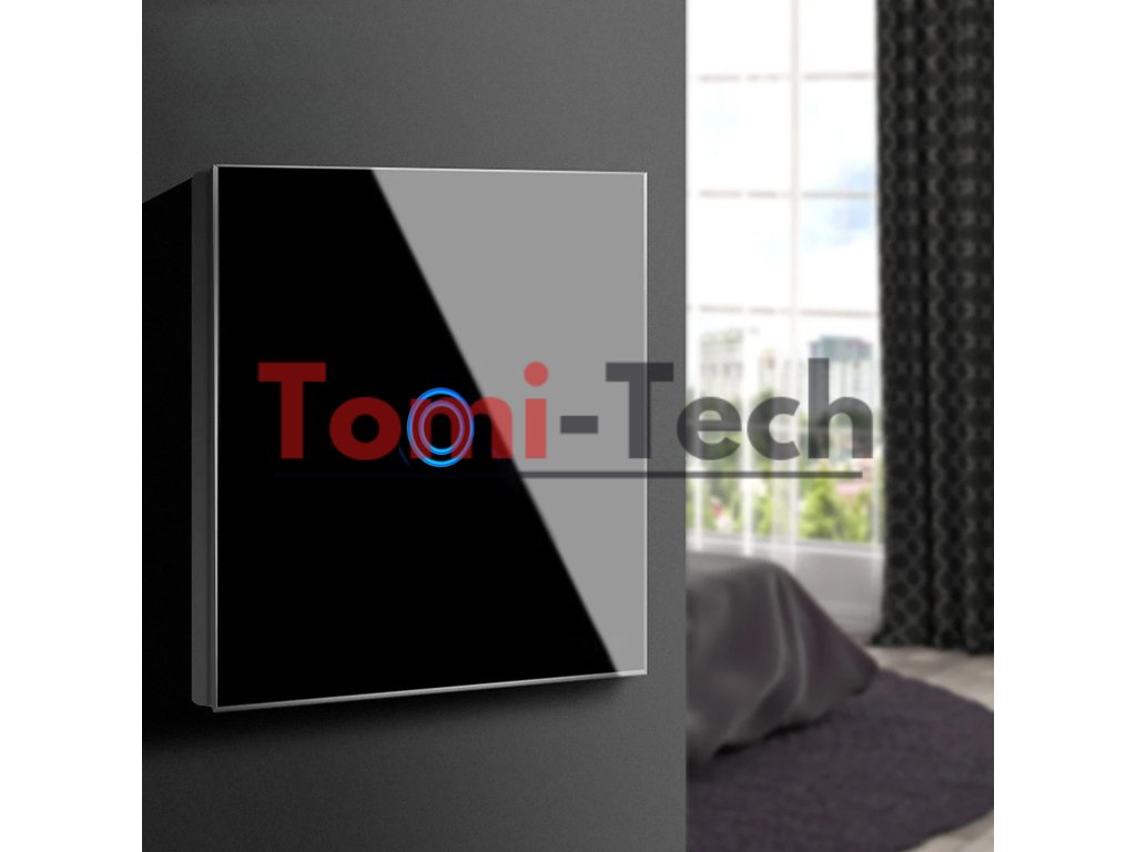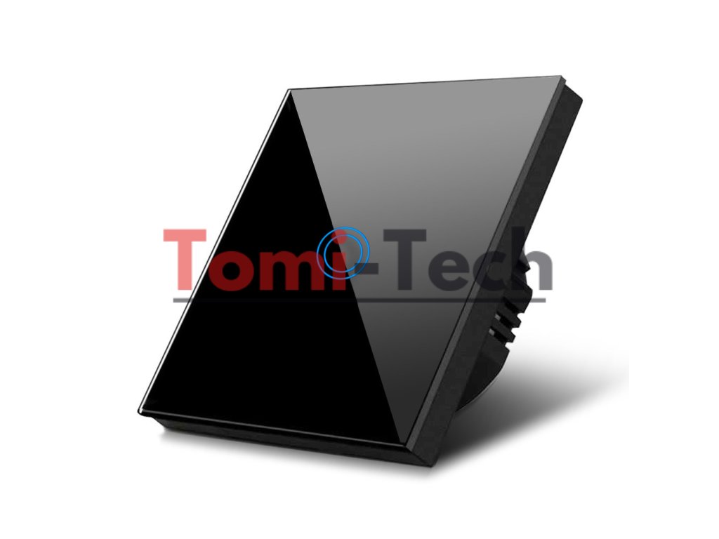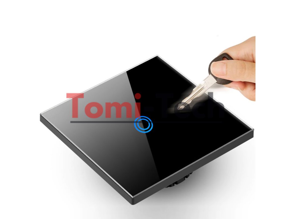 Dotykový vypínač, Maclean, jednoduchý, sklenený, čierny s okrúhlym podsvietením tlačidiel, 86x86 mm, MCE702B