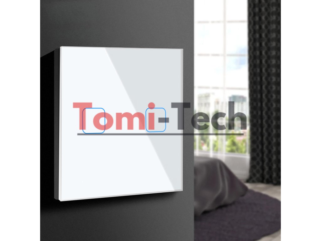 Dotykový vypínač Maclean, dvojitý, sklenený, biely s podsvietením štvorcového tlačidla, MCE703W