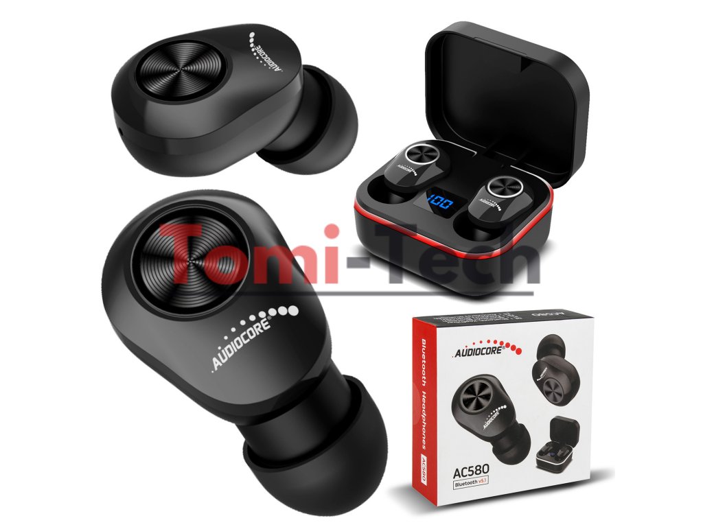 Slúchadlá do uší TWS BT 5.1 Audiocore s nabíjacou základňou 300 mAh, slúchadlá s batériou 30 mAh, čierne AC580