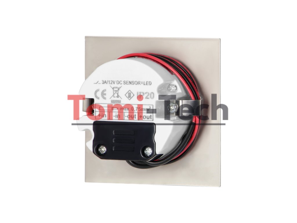 DRACO LED NOVINKA 1,5 W, zapustené schodiskové svietidlo, 12 V DC, 30 lm, 3000 K, saténové, senzor pohybu a súmraku