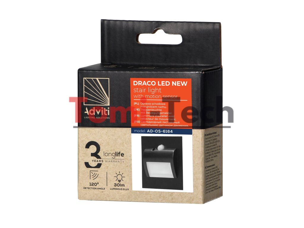 DRACO LED NEW 1,5W, zapustené schodiskové svietidlo, 12VDC, 30lm, 4000K, čierne, senzor pohybu a súmrakuDodatočné parametre