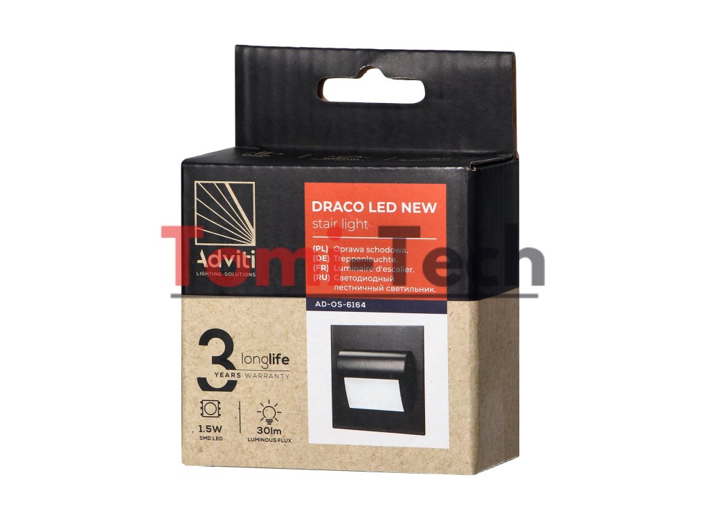 DRACO LED NEW 1,5W, zapustené schodiskové svietidlo, 12VDC, 30lm, 6000K, čierne, inovatívny spôsob montážeDodatočné parametre