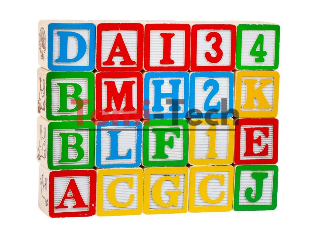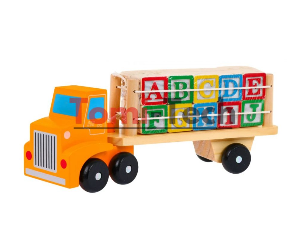 Táto sada je kombináciou učenia a zábavy. Rozvíja motoriku, manuálnu zručnosť, koordináciu oko-ruka. Sada obsahuje 20 drevených kociek s písmenami abecedy a kresbami. Po skončení hry je možné všetky bloky umiestniť na príves nákladného auta.