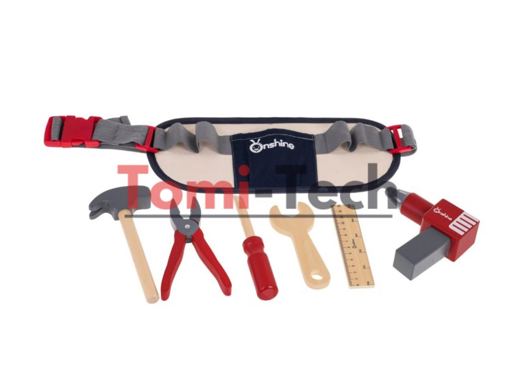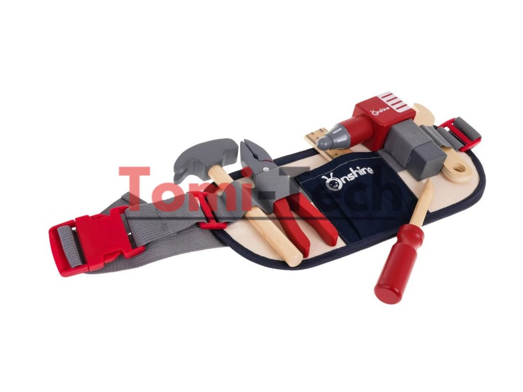 Nástroje ako kladivo, kliešte, skrutkovač, meter alebo vidlicový kľúč sú vyrobené z dreva, sú bezpečné a odolné a nemajú ostré hrany. Opasok na náradie je nastaviteľný a zapína sa na patentku.