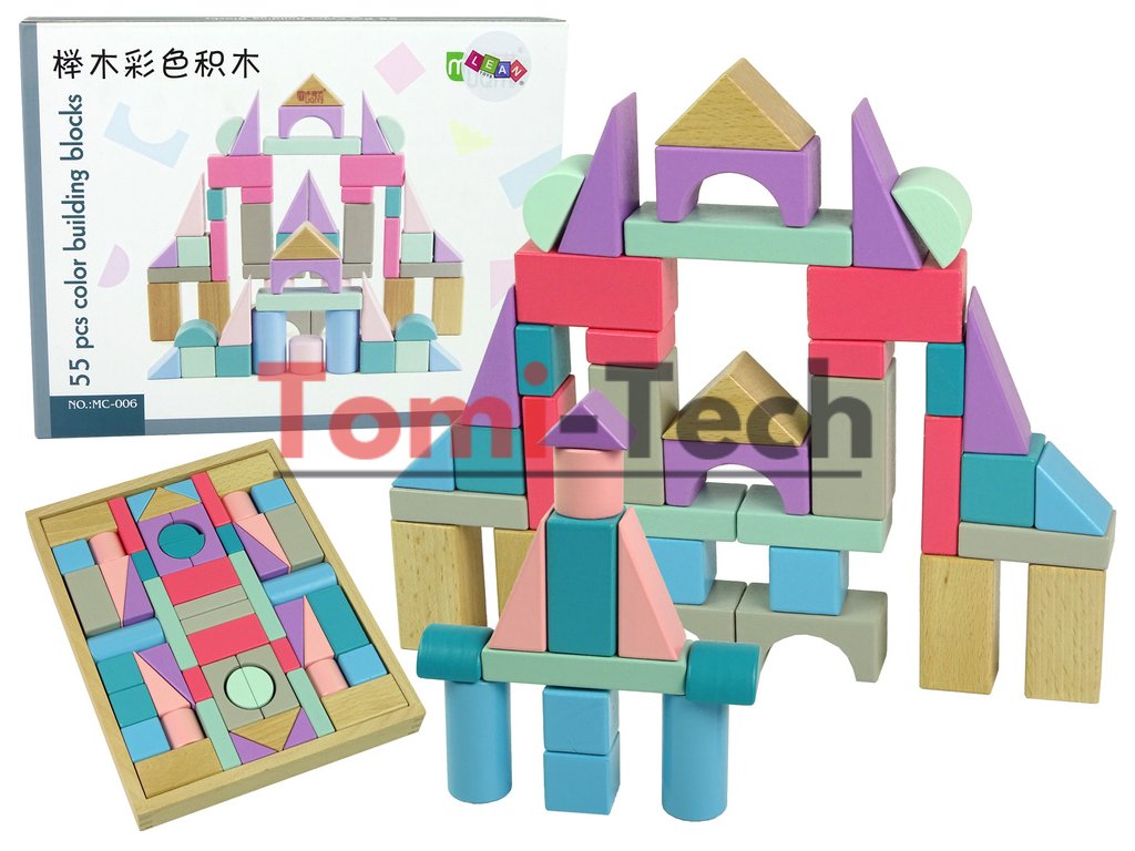 Drevené kocky pastelových farieb 55 dielikov hradné budovy
