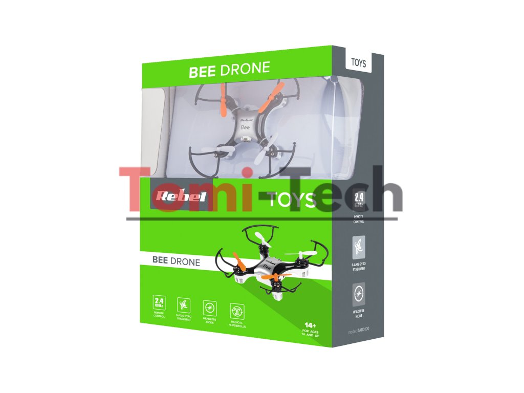 Dron Bee je perfektný gadget pre malých aj veľkých chlapcov, ktorí by chceli začať svoje dobrodružstvo s dronmi. Ovládanie tohto modelu je veľmi jednoduché vďaka intuitívnemu diaľkovému ovládaniu s dosahom až 100 m. Voľné a presné pilotovanie dronu Bee umožňuje 6-osový gyroskop a funkcia automatického trimovania. Zariadenie má dva navigačné režimy a ďalšiu možnosť výberu z troch rýchlostí.
