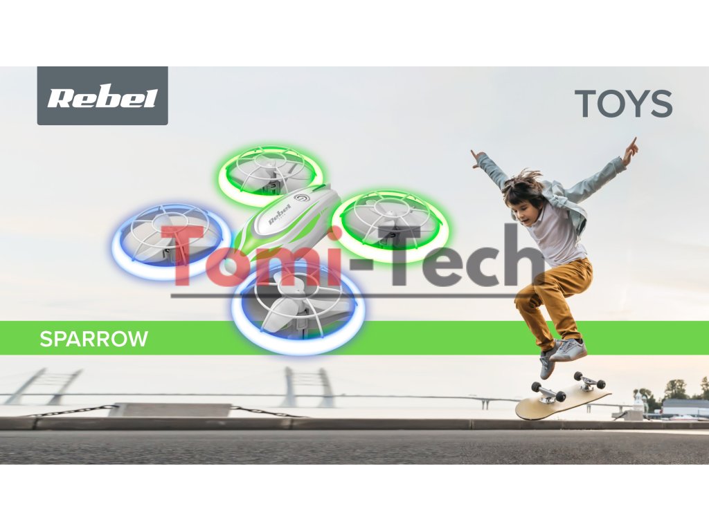 Dron Sparrow zo série Rebel Toys je ideálnym riešením na hranie doma, ako aj na vykonávanie leteckých akrobacií vonku. Vďaka svojej funkčnosti je zariadenie veľmi zábavné pre deti aj začiatočníkov.
