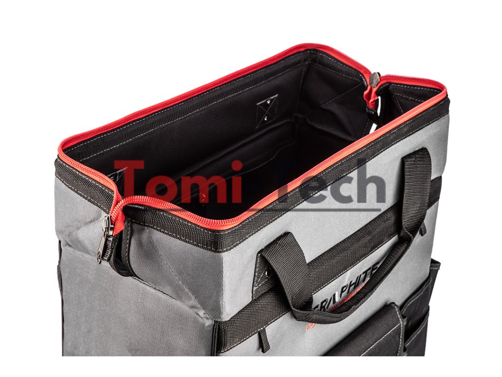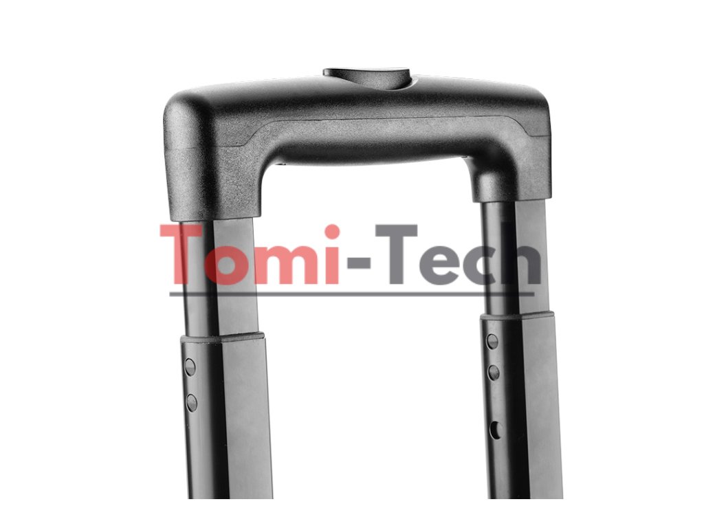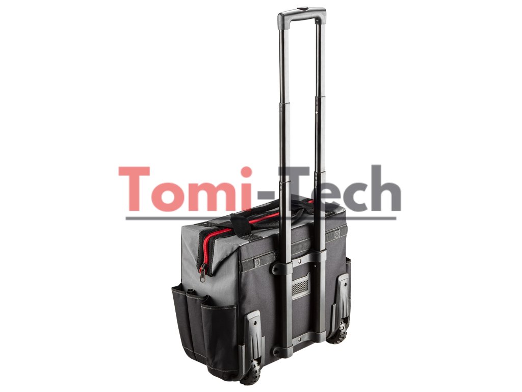 Veľká taška na kolieskach s teleskopickou rukoväťou. Objem 42 l, vrátane 11 vonkajších vreciek. Vyrobená z polyesteru.Dodatočné parametre