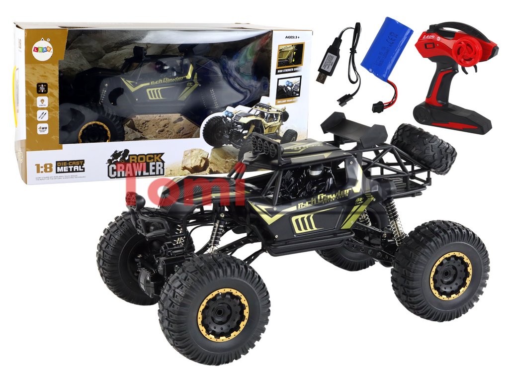 Radi by sme vám predstavili náš vlajkový produkt - mega veľké terénne vozidlo na diaľkové ovládanie v mierke 1:8 s pohonom všetkých štyroch kolies, dostupné v elegantnej čiernej farbe.