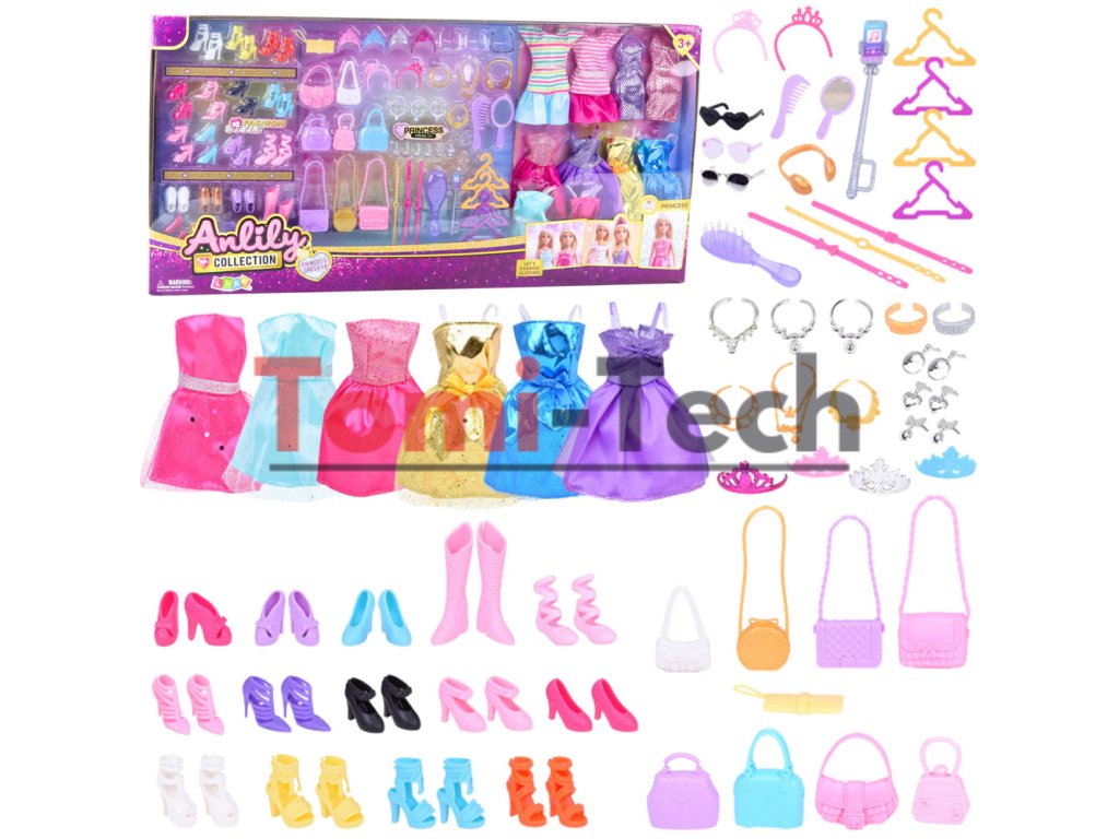 Veľká módna súprava Anlily kolekcia šiat a doplnkov 65 ks.